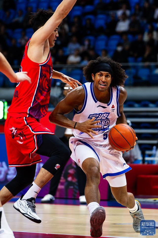 ↑ 宁波町渥队球员辛普森(右)突破广州朗肽海本队球员袁照耀的防守。
